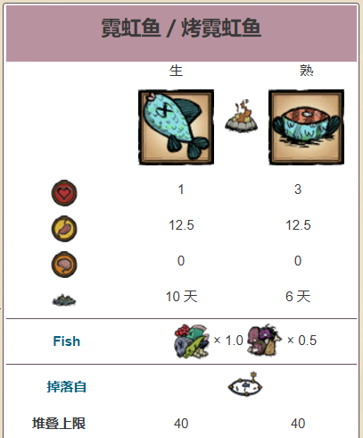 霓虹鱼(Neon Quattro) 是在船难DLC中新增的鱼类食物物品。它们可以通过在养鱼场放鱼子获得,一同还会有紫石斑鱼、小丑鱼和热带鱼。它们可以在烹饪锅中作为 0.5 单位的肉类系数和 1 单位的鱼类系数使用。它们是烹饪马赛热带鱼汤的必需品。霓虹鱼不能用干肉架晒干。