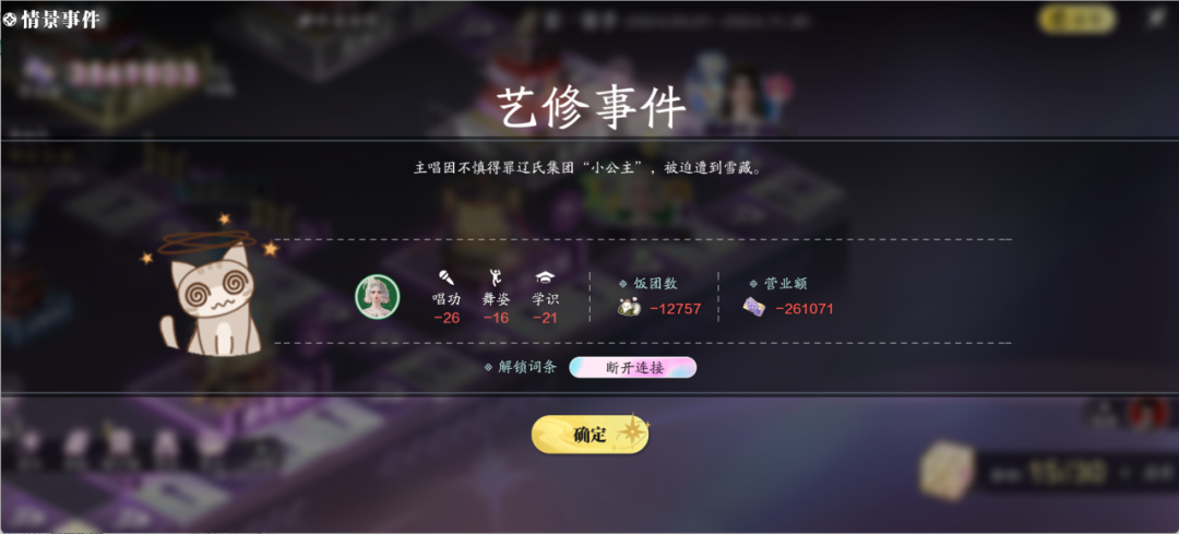艺人完成正面事件可获得艺人属性、饭团及营业额收益。