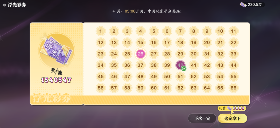 刀妹做梦都在祈祷可以中彩券,一直没有中的原因是没有买过!少侠可不要像刀妹一样错过“暴富”机会,每次掷骰子停留在浮光彩券门口时,都可以选购点数彩券,但是不可以重复选择。