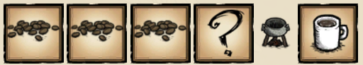 咖啡是海难DLC中的一种食物物品,可以在烹饪锅中烹饪,所需材料为3个烘焙咖啡豆加上任何乳制品或者1个额外的烘焙咖啡豆。