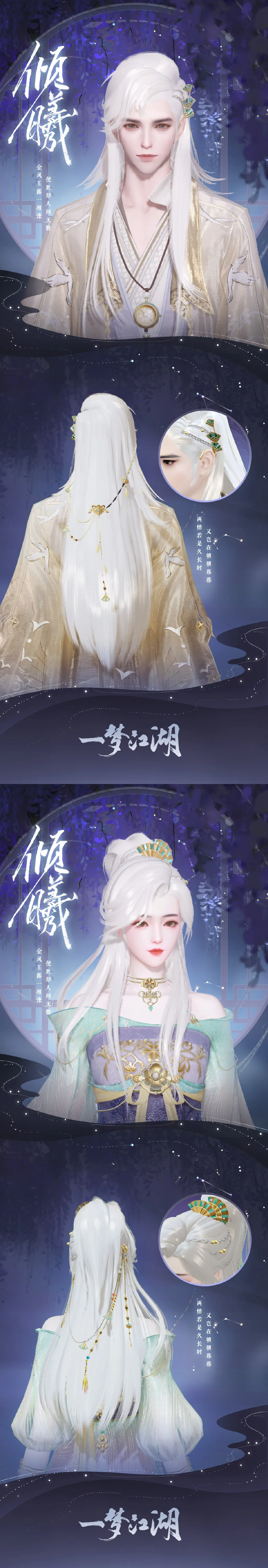 白发·倾曦以云锦楼全新烫染与编发技术制作而成,镶翠金扇搭配珠玉金丝点缀在柔美的皓白秀发间,雍容贵气、超然脱俗。