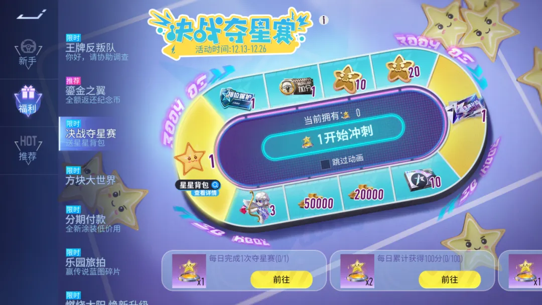 12月13日~12月26日,参与夺星赛玩法可免费获得星星背包和王牌补给券!