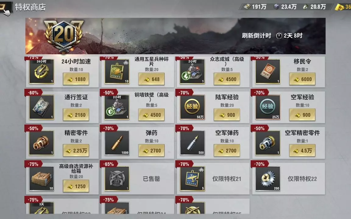 5级配件升6级配件享7折优惠,指挥官们赶快去升级配件吧!
