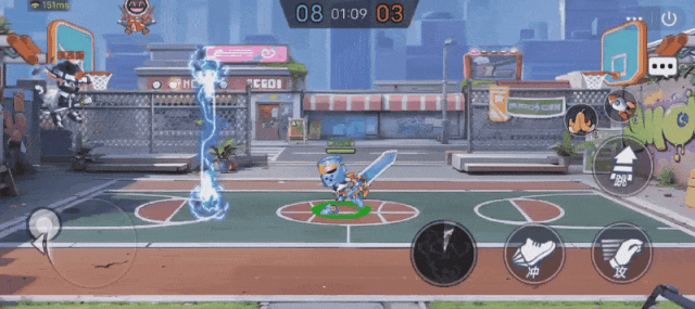 利用骑士一招打烂球宝的特性,我们可以在扣篮之后,等待球宝飞来二段跳打一下冲了之后再扣篮。