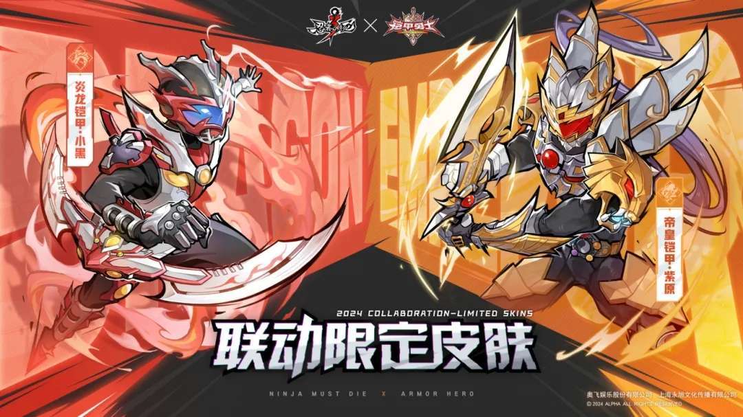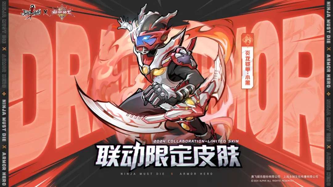 《忍者必须死3》×《铠甲勇士》联动皮肤将在12月19日正式上线,两款铠甲造型携光影之力震撼降临,炎魂·小黑联动限定皮肤「炎龙铠甲」可通过活动免费获得!穿上铠甲,踏上战场,这一次,我们不再是荧幕前的观众,而是代表正义的英雄主角!