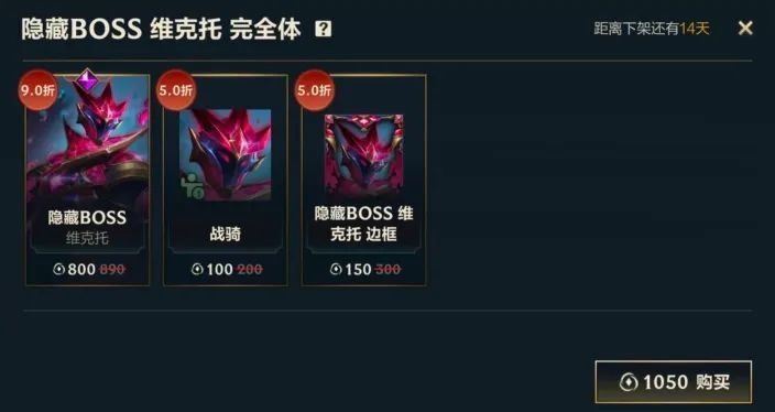 隐藏BOSS 维克托 完全体礼包限时优惠出售中!即日起至12月25日23:59,召唤师可以使用1050点券购入完全体礼包,礼包内包含9折优惠的隐藏BOSS 维克托皮肤,更有5折优惠的姿态-战骑和皮肤边框-隐藏BOSS 维克托。
