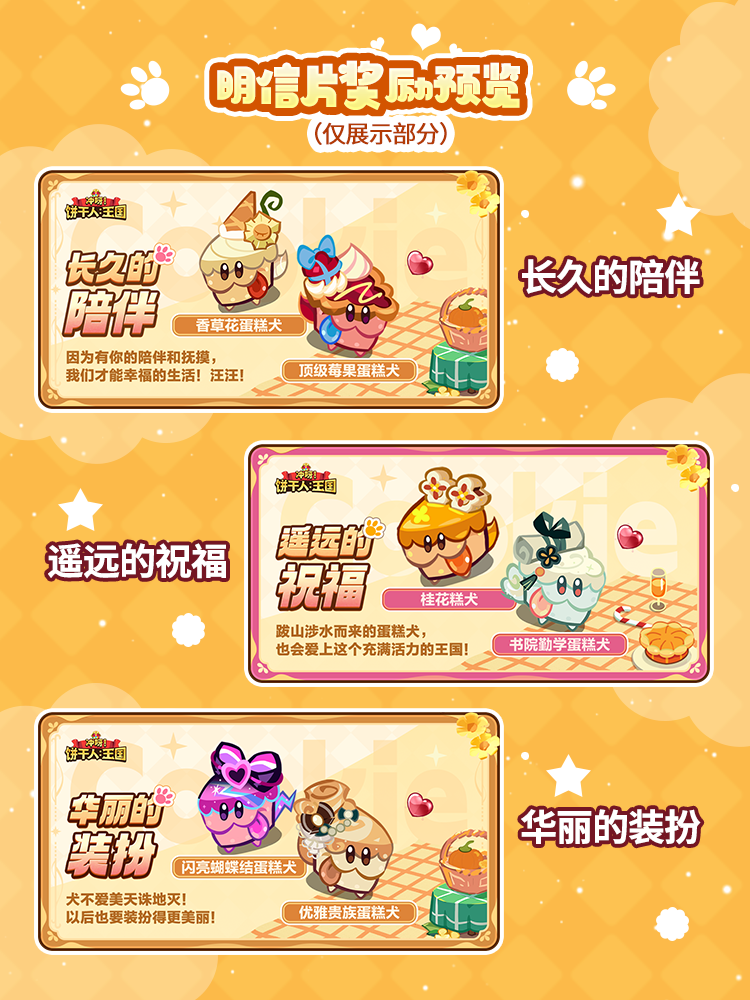 ——每日阅读剧情,完成与蛋糕犬的合作后,即可领取每组对应的奖励,同时还可以分享领取特别明信片!来为你的蛋糕犬搭建一个乐园吧!