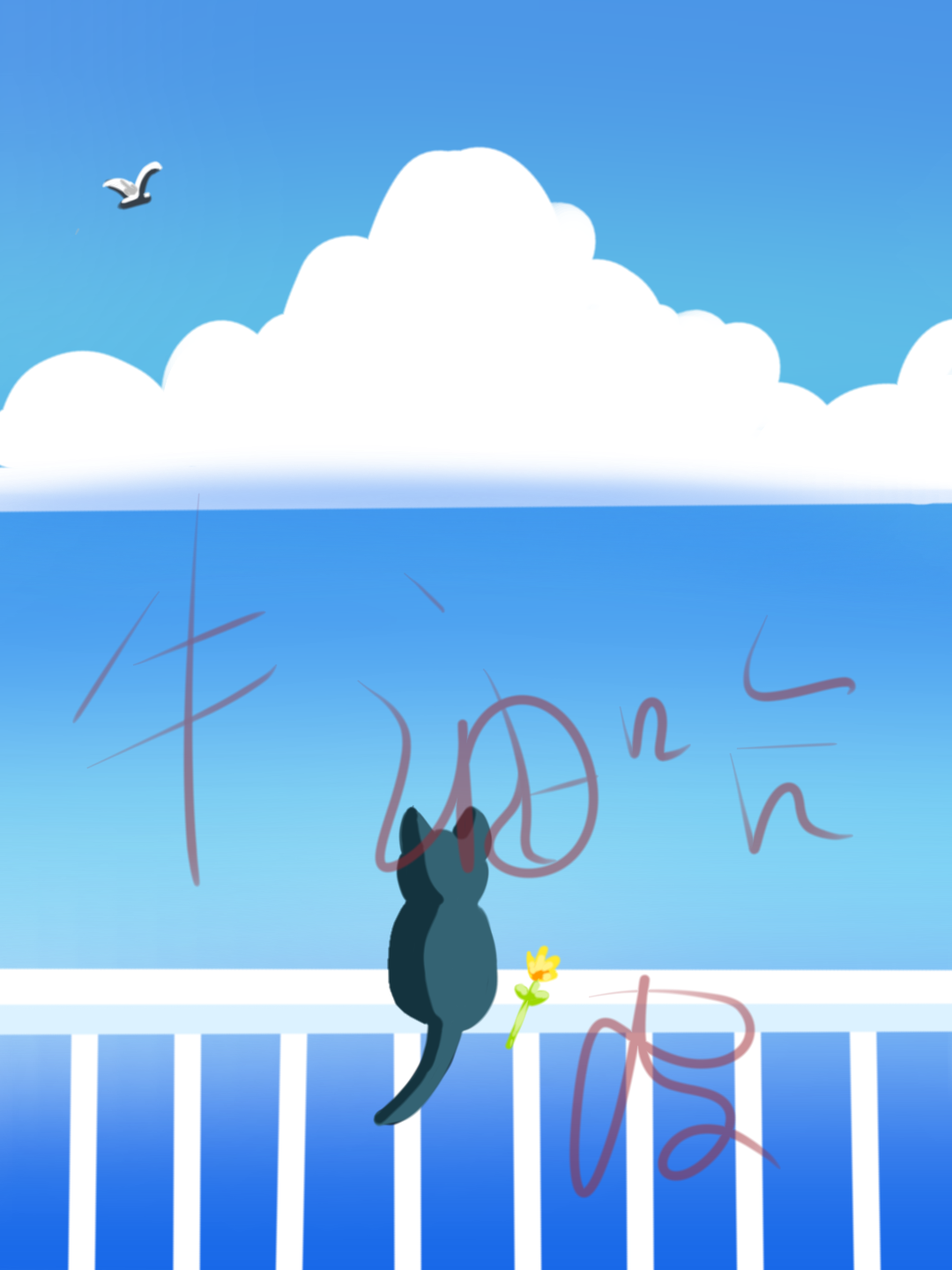 风景画,云的阴影不会画,干脆就没画
