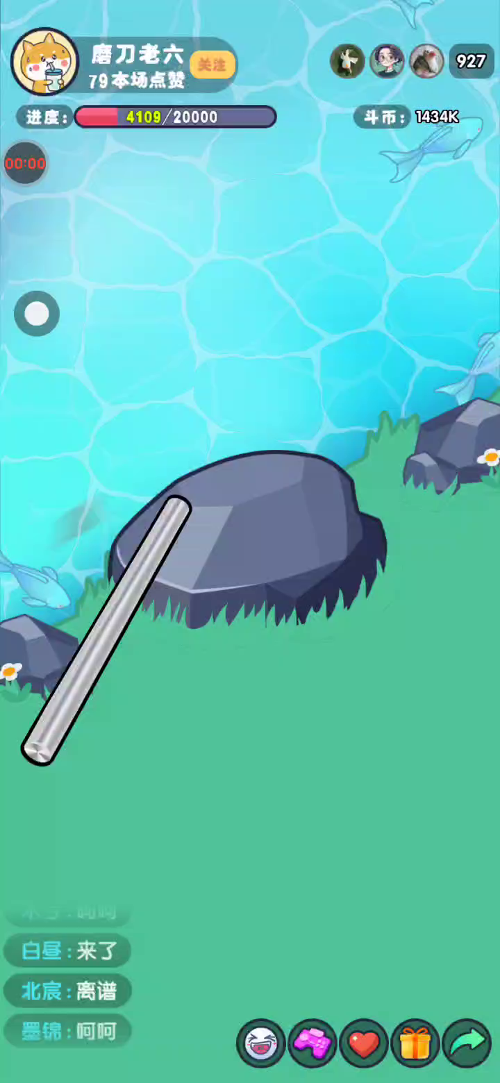 一款休闲类小游戏,游戏的核心玩法为模拟磨铁棒,玩家需要将各种材料的棒子在小河边的石头上磨成针,磨成针后,解锁下一个棒,不停的滑动屏幕直播磨成针吧,还能通过购买打赏各种礼物来增加磨成针的进度,搭配动听的音乐,还不来试试!