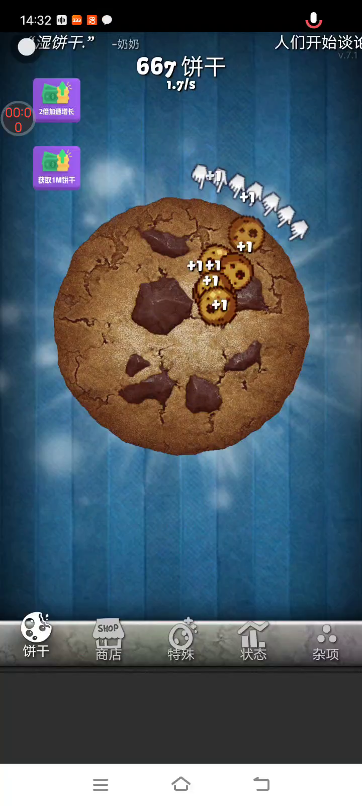 借助饼干,升级各种建筑以及……老奶奶! 你就能获得饼干助手,帮助你做多多的饼干。 随着进度推进,你能解锁的建筑以及辅助道具会越来越多。 头顶滚动的新闻也会越来越奇葩。 比如全球变暖因为饼干过多? 世界大战因饼干而起?等等。 但不要担心,都是小事。 因为后期,你甚至可以借助饼干飞升呢……