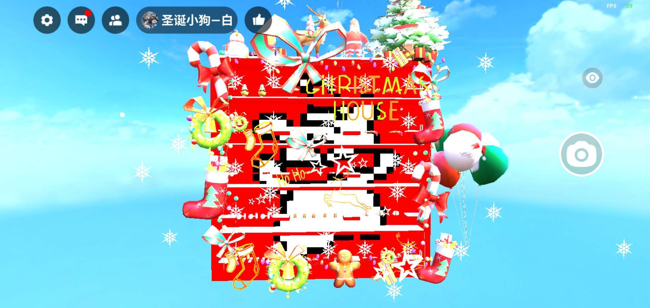 到达终点视角往后面移动可以看地图的样貌 地图可以看出全部都是圣诞节的物品 墙上还有字