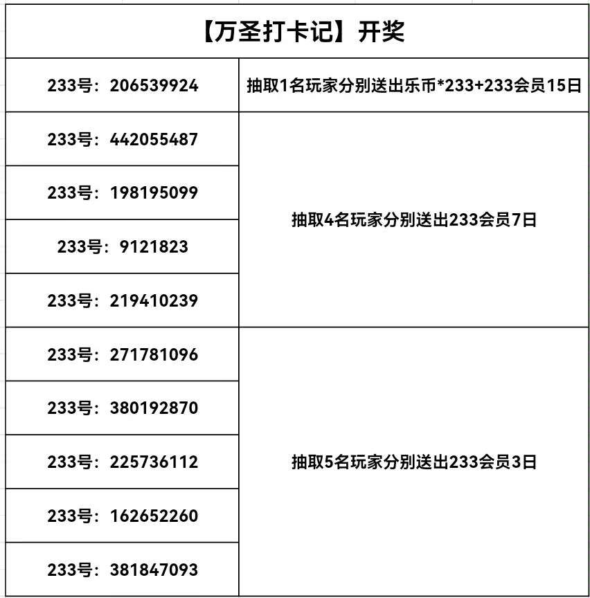 抽取1名玩家分别送出乐币*233+233会员15日