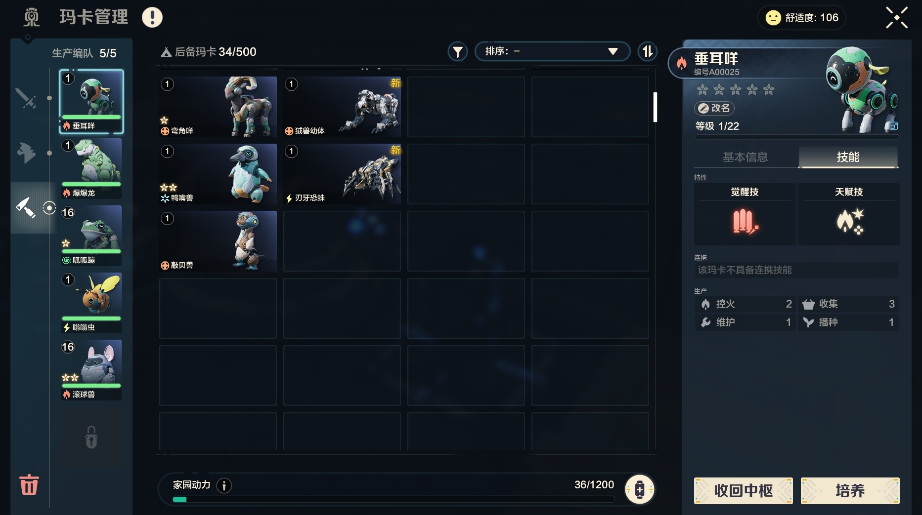 生产类玛卡则可以协助我们伐木,控火、挖矿、制造,浇水,收集,播种等。我们可以在家园中枢里的玛卡管理中将他们编入生产编队,以此来指挥有特长的玛卡去做相应的工作来为我们打工。