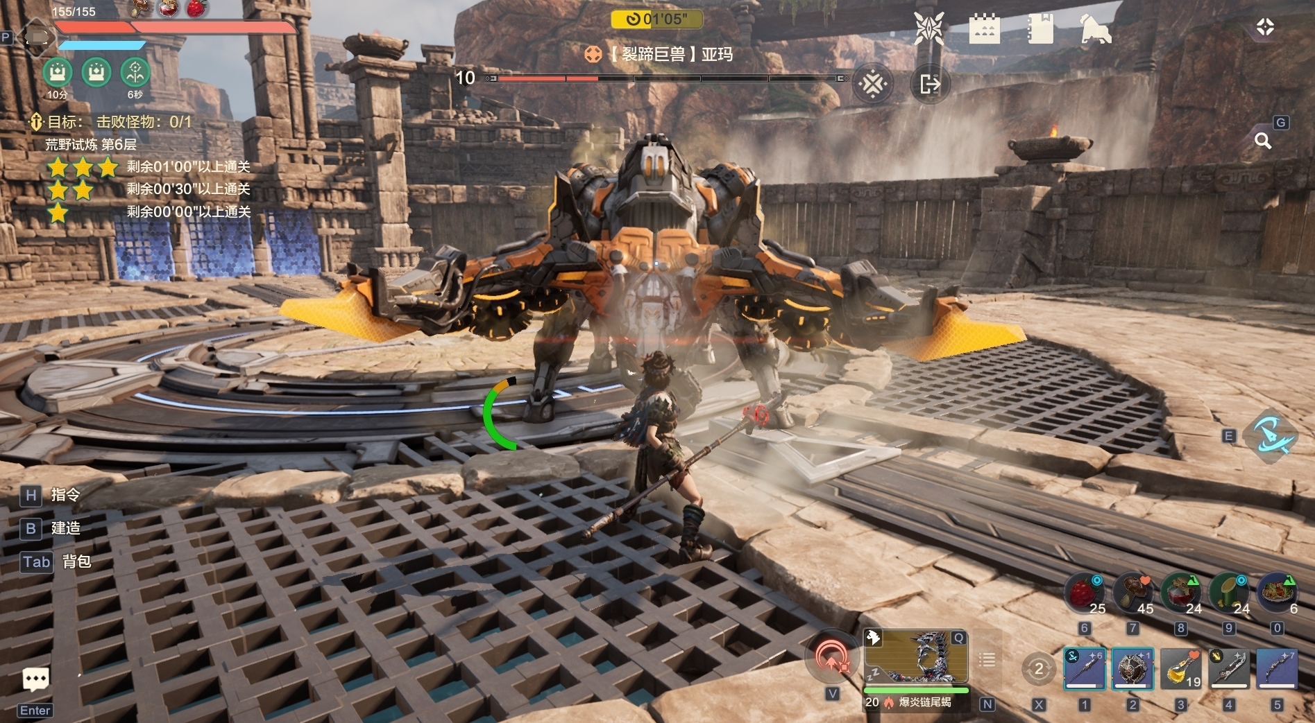 战斗时还需要格外关注体力值,游戏中设有体力值,当我们在快速奔跑、轻重攻击、跳跃、防御、闪避、伐树、挖矿等一系列动作都会消耗体力,前期由于体力值较少且各个动作消耗过快,因此在战斗时要留意体力,不要出现攻击过快而导致没有体力闪避或防御的窘态。