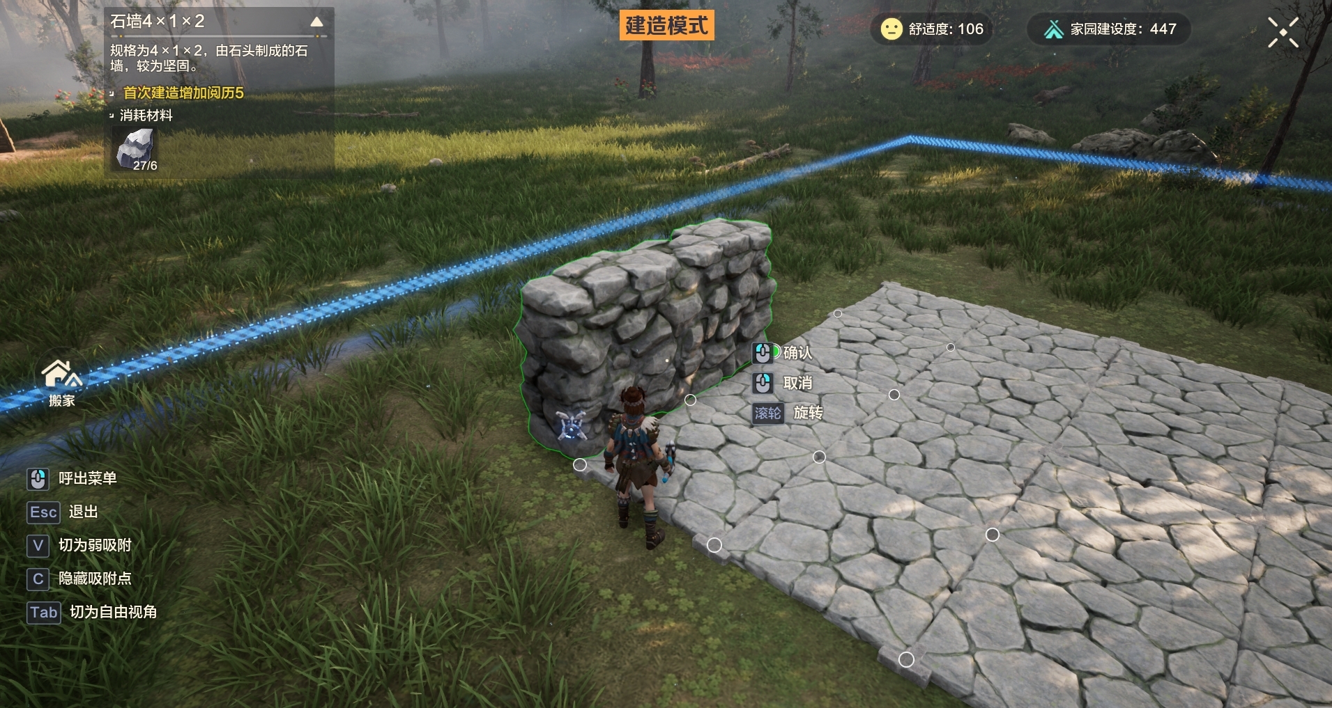 建造家园需要消耗木材、石头等材料,这些材料都需要我们在大世界中采集获得。建议大家在游戏初期建造家园的时候,除了风景好之外最好是选择物资比较丰富的地方,这样采集物资更快更方便可以省很多时间。此外放置篝火时记得将篝火放置在烧烤架下方,随后可以将自己的床也放置在篝火旁边,这样两件家居都可以吃到篝火的效果,一火多用会很方便。