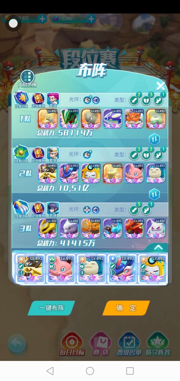 目前三支队伍的战力状况