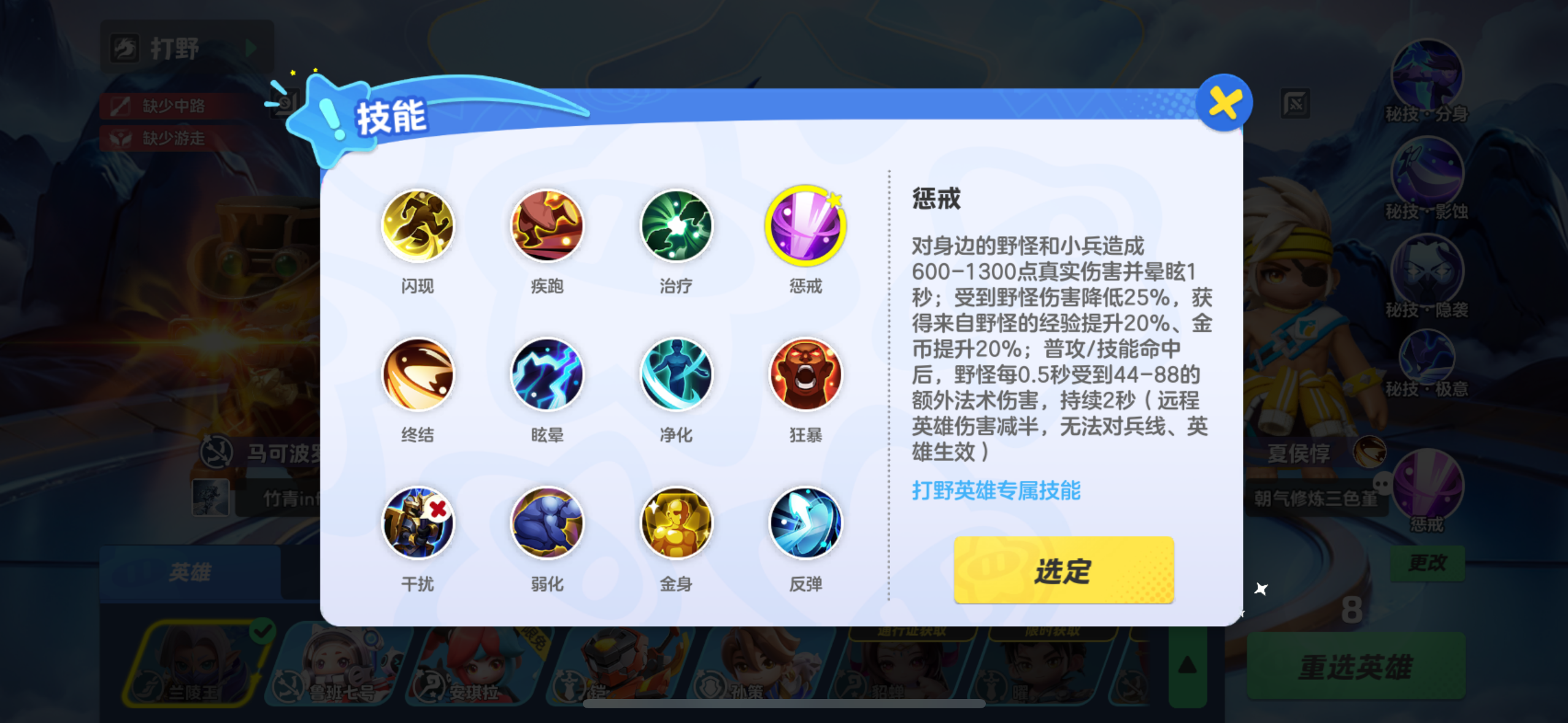 惩戒:惩戒是每一位打野英雄必备的召唤师技能,能够加快打野效率,更快获得经济!并且在抢夺大小龙之前,手里留一个惩戒,最后几秒再释放,抢到的概率更大哦!