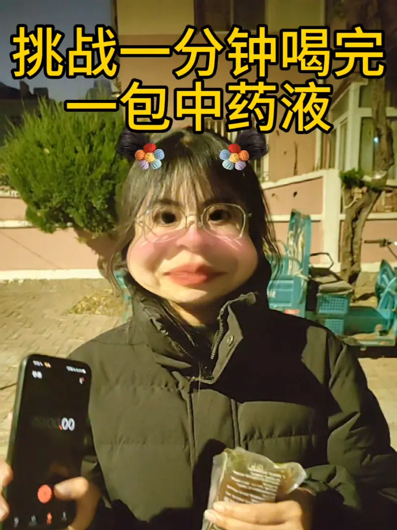 挑战第一天 挑战一分钟喝完一包中药液!#仙女都在喝什么 #女大学生 #喝中药 #挑战 #挑战自己突破自己