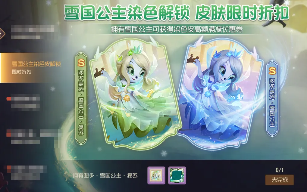 全新S级皮肤图多盖洛·雪国公主·复苏即将上线,小伙伴可通过商城获得或使用染剂合成该皮肤。拥有雪国公主的小伙伴,还能领取染色皮的高额满减优惠券哦!