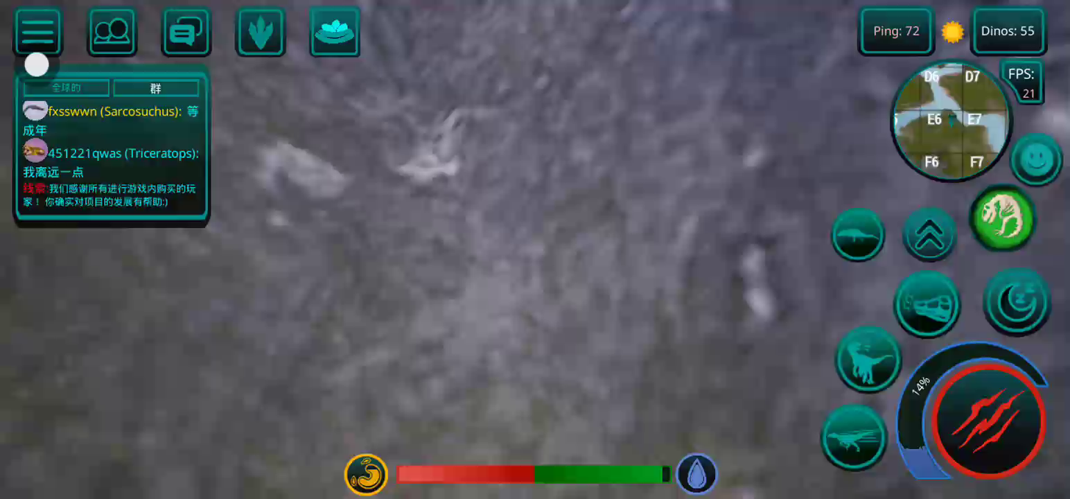 【更新:修复错误,提高稳定性】 恐龙岛是一款以侏罗纪世界为背景的逼真在线恐龙模拟器。 享受各种恐龙、逼真的图形和岛屿大地图。 选择你的恐龙并开始生存, 与您的朋友以及世界各地的玩家一起玩。 游戏中呈现了所有流行的恐龙,例如,从霸王龙、棘龙等食肉动物开始,到三角龙、甲龙等食草动物,游戏中有超过 23 种恐龙,包括飞行和游泳物种,以及所有恐龙。 如何玩诅咒岛 肉食性恐龙在线模拟器 - 恐龙生存和狩猎的游戏特色: 1.成长系统! 恐龙不会立即显得很大,需要照顾。 你需要培养他。你需要生存、寻找食物和饮料,并避免来自其他肉食恐龙(例如巨龙、重爪龙或暴龙)的潜在威胁。 2. 首先,玩家需要选择一种恐龙。 请记住 - 这是您个人的恐龙! 在恐龙游戏中,不仅有肉食性恐龙和草食性恐龙,还有会飞的恐龙,例如翼手龙,玩家可以与自己物种的食肉动物联合成群,以抵抗其他物种,最重要的是,生存! 3.食物提取,如果恐龙是掠食者,那么你需要杀死其他玩家的恐龙才能得到自己的食物,如果你是草食动物,那么食物就更容易了,你需要特殊的蕨类植物,你可以得到足够的他们! 地图上任意湖泊、水库都可以饮用。 4.文字聊天和好友系统。 您可以与世界各地的朋友和玩家聊天、制定策略、缔造和平等等。 并且还可以将玩家添加为好友,并加入到游戏的骨架中