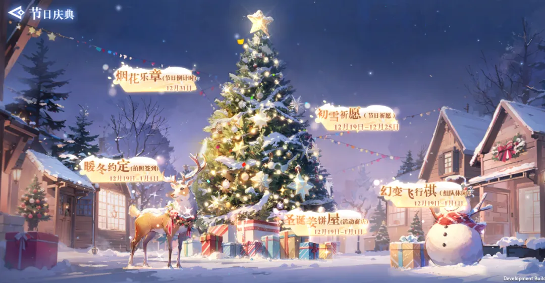 活动简介:参与圣诞节中的各类活动以获得[圣诞姜饼],并在圣诞姜饼屋中自主选择兑换的道具和限时返场饰品[冬雪娃娃]、[雪之华]。