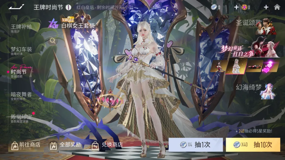 『红白皇后时尚节』红玫瑰,是风情万种;白玫瑰,是皎洁月光。当童话世界中的红白皇后出现在你眼前,诱人的红和圣洁的白,你更喜欢哪一种呢?2024年12月20日~2025年1月23日,红白皇后系列至臻套装携个性喷口特效上架时尚节~