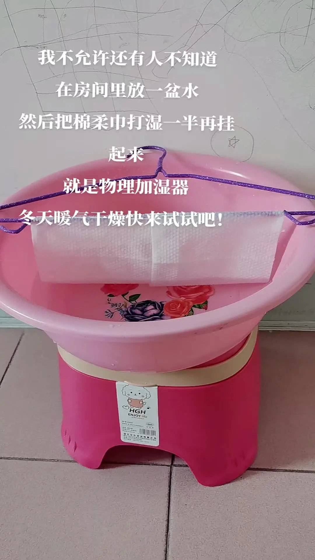 原来这就是加湿器的原理啊,晚上睡觉 果然没那么干了,家里开暖气开空调的. 这个物理加湿器快get起来,#加湿器 #宝妈分享#供暖 #小妙招大作用#自制#加湿器