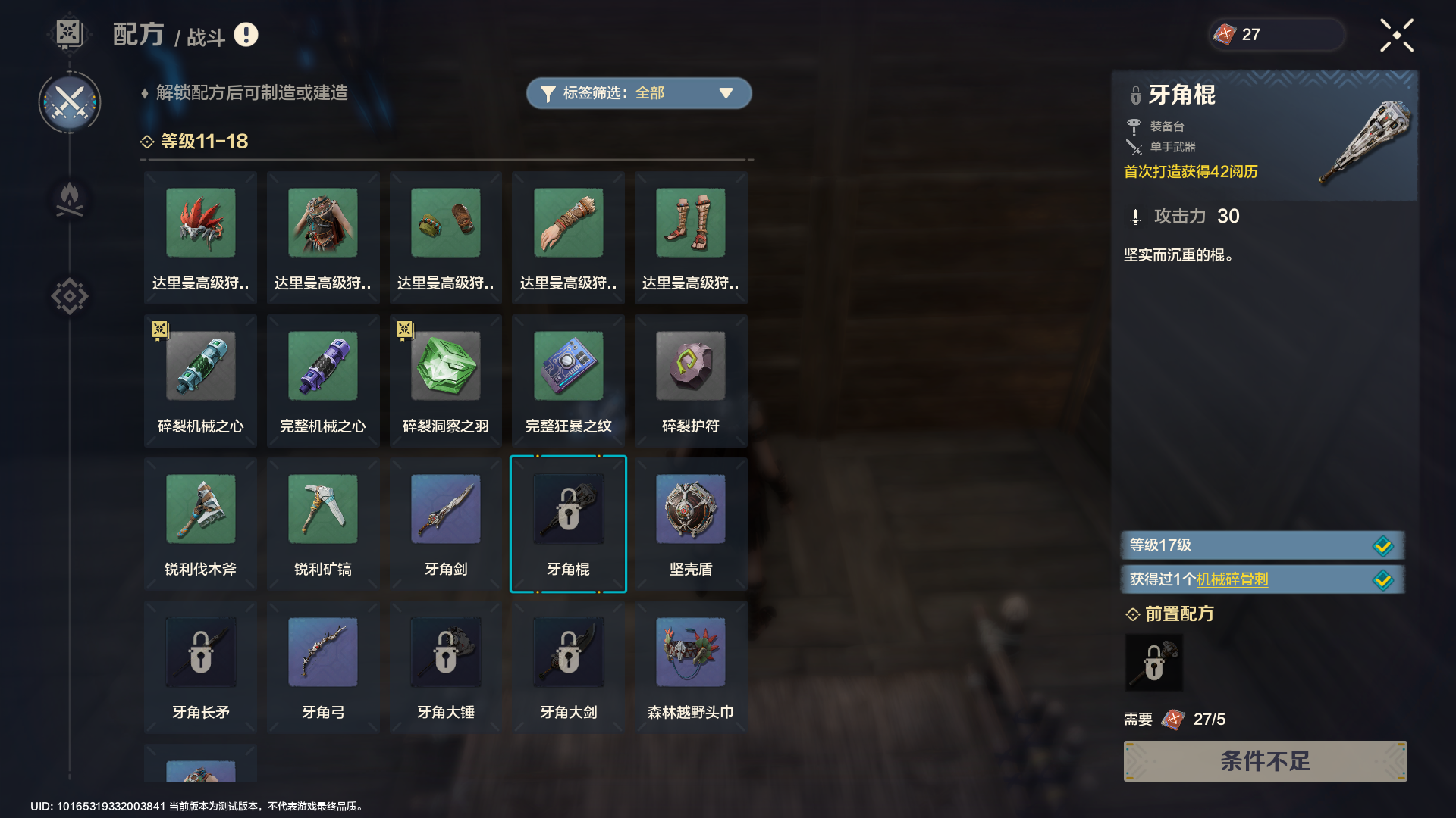 而制作的前提是解锁该物品的配方,要解锁配方除了人物等级的提升,还要消耗对应分类的配方书。
