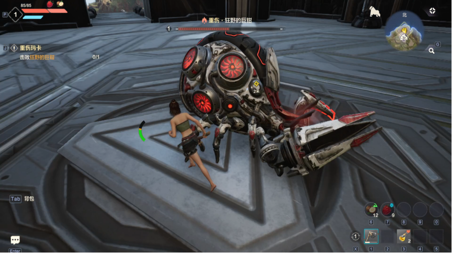 第一个小Boss,“狂野的巨钳”,就是让新手熟悉操作的,这里建议大家可以把按键稍微改一下,左Shift是加速跑,左Ctrl是闪避,把闪避改到鼠标侧键,会让战斗的流畅度更高,毕竟闪避的时候,手就不用放开加速跑按键了。小Boss不难,如果中途出了意外没打过,不要慌,这个小Boss不回血的,耗都耗死他。