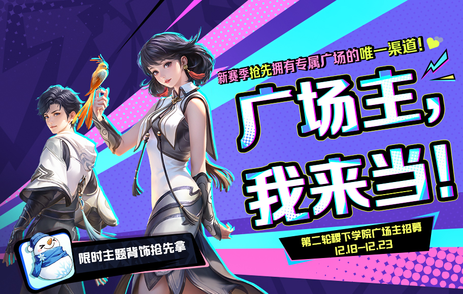 今日稷下学院将开启第二轮广场主招募,首轮未参与的召唤师们,快抓紧时间报名吧~新赛季抢先拥有专属广场的唯一渠道就在这里!通过筛选并成功成为广场主,还将获得限时主题背饰。
