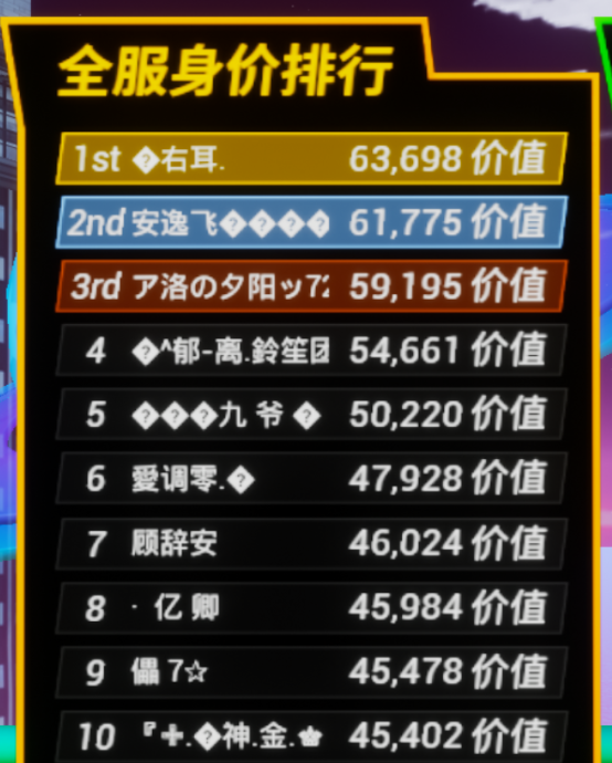恭喜@🆔右耳. 登顶全服身价排行榜第一哦~