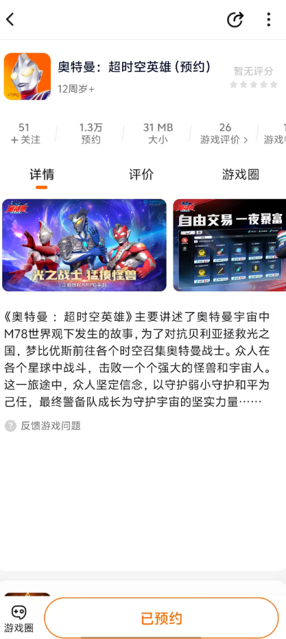 ①成功预约《奥特曼:超时空英雄》;
