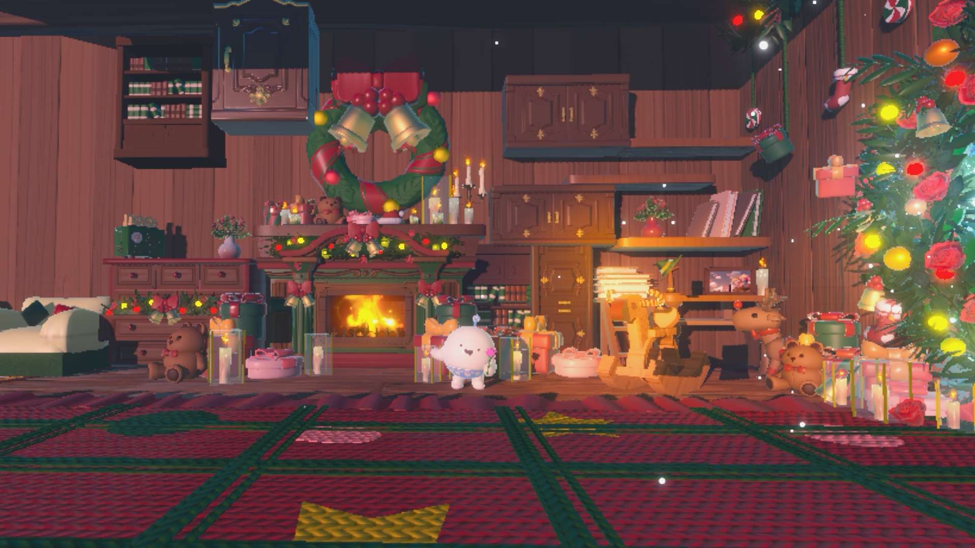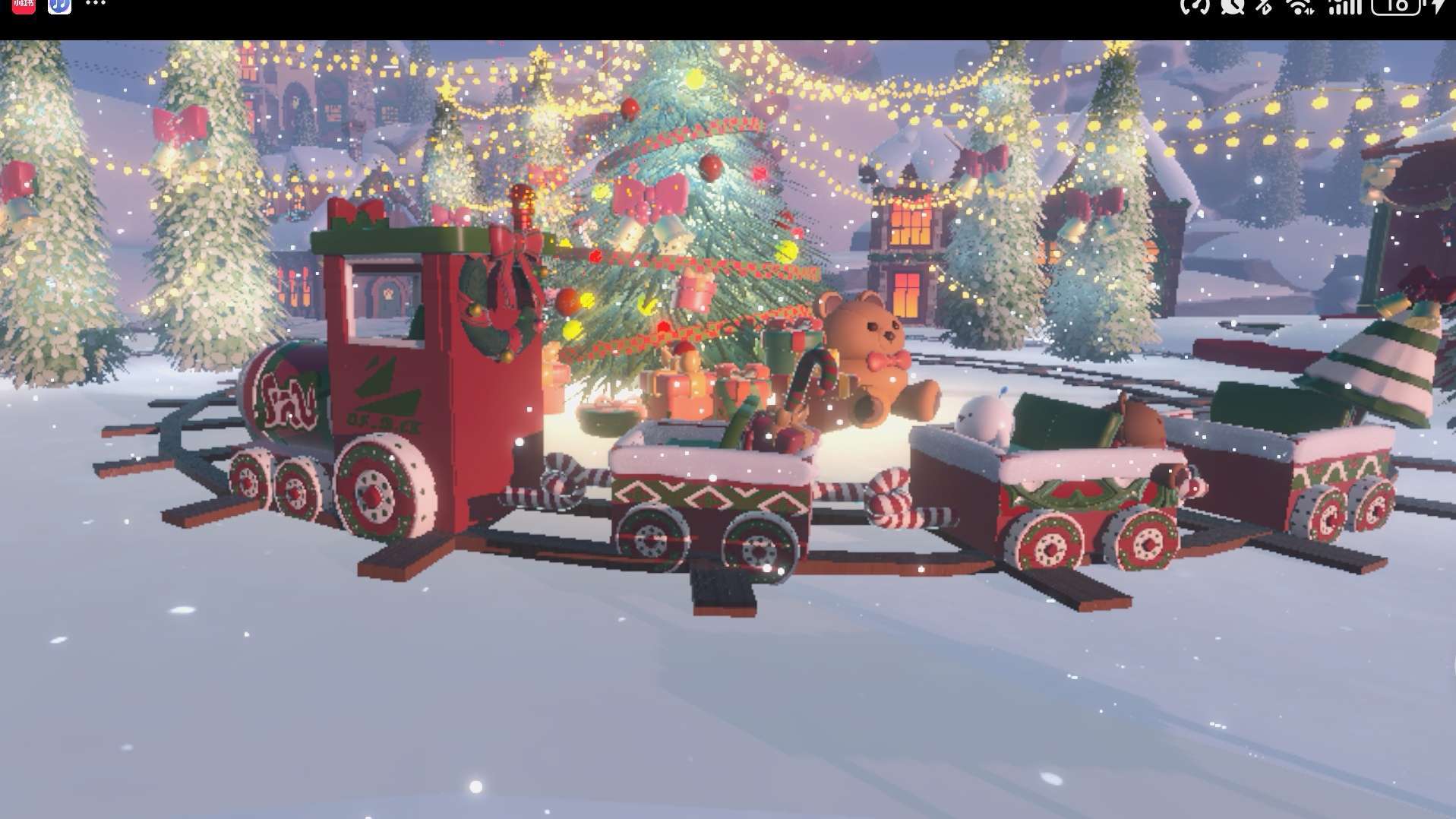 圣诞树旁边还有一个小熊和一堆礼物哦(注意圣诞树、小熊和礼物都是虚幻的)