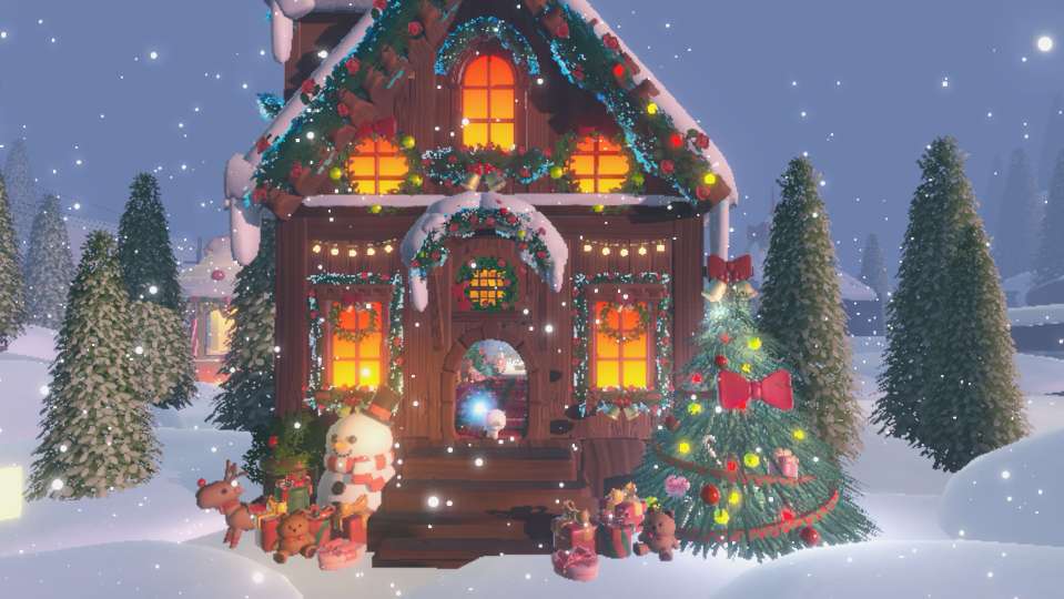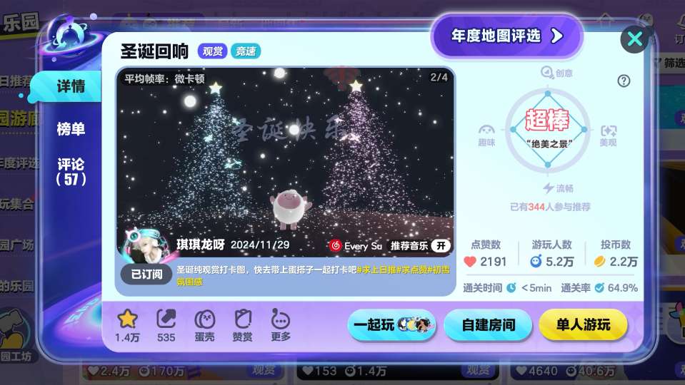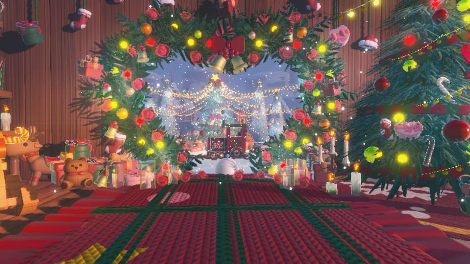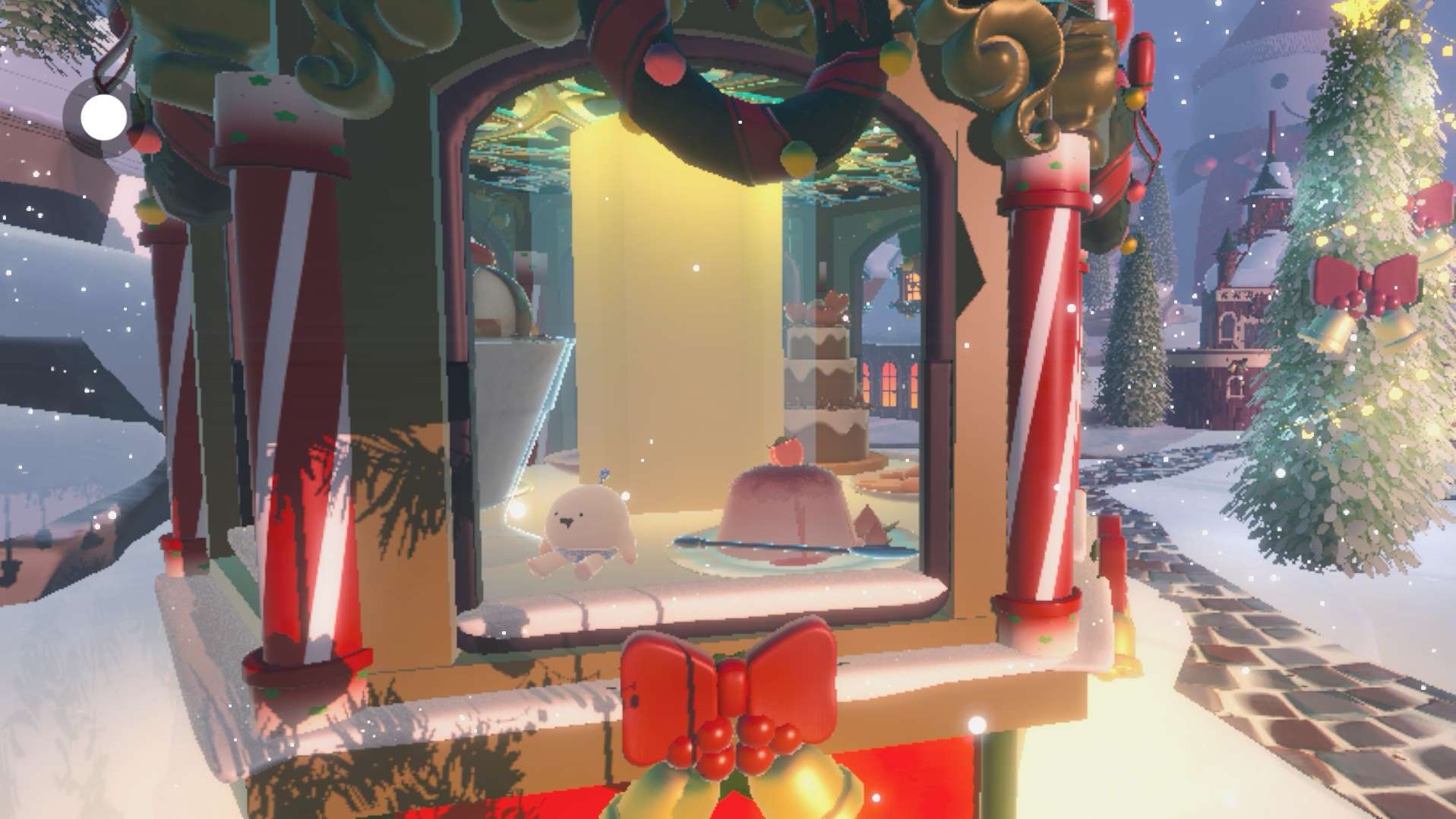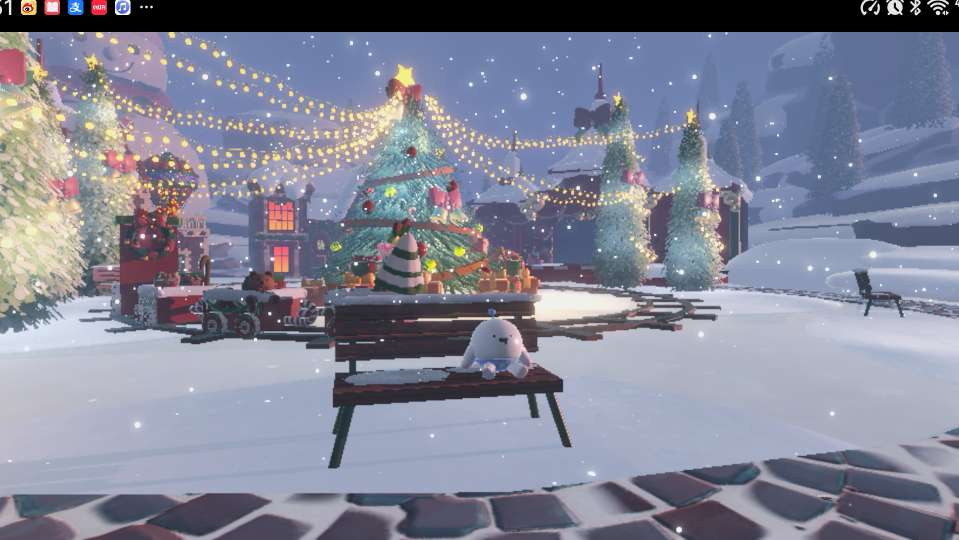 第二个地方有点靠时机的掌握,需要坐上热气球上来(注意!!房顶的落脚地比较小,最好是两个人抱着)在这里,可以看到地图的全景圣诞树、霓虹灯、雪人......圣诞的元素全部及其