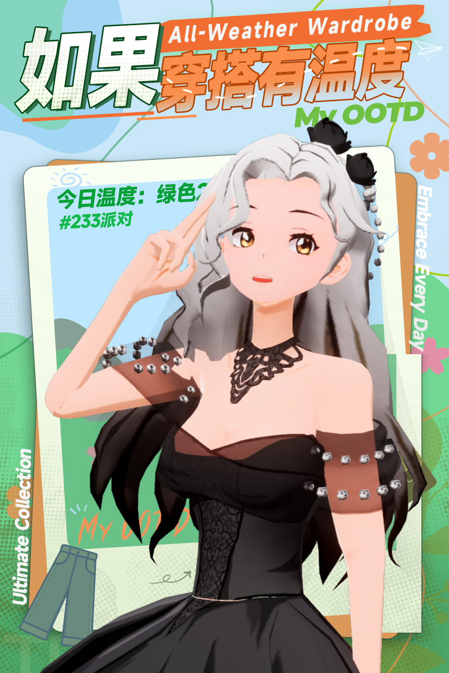 也是搭配了一个还行的衣服和套装。