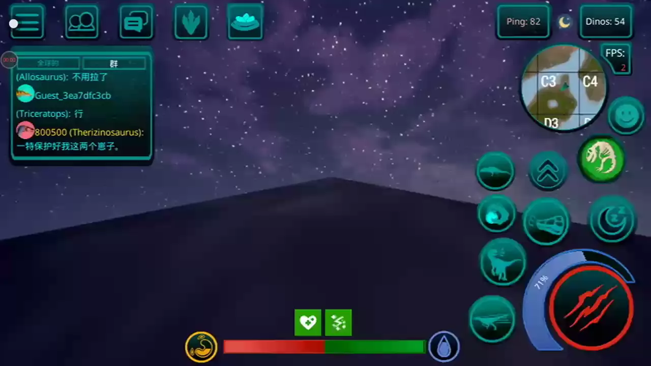 【更新:修复错误,提高稳定性】 恐龙岛是一款以侏罗纪世界为背景的逼真在线恐龙模拟器。 享受各种恐龙、逼真的图形和岛屿大地图。 选择你的恐龙并开始生存, 与您的朋友以及世界各地的玩家一起玩。 游戏中呈现了所有流行的恐龙,例如,从霸王龙、棘龙等食肉动物开始,到三角龙、甲龙等食草动物,游戏中有超过 23 种恐龙,包括飞行和游泳物种,以及所有恐龙。 如何玩诅咒岛 肉食性恐龙在线模拟器 - 恐龙生存和狩猎的游戏特色: 1.成长系统! 恐龙不会立即显得很大,需要照顾。 你需要培养他。你需要生存、寻找食物和饮料,并避免来自其他肉食恐龙(例如巨龙、重爪龙或暴龙)的潜在威胁。 2. 首先,玩家需要选择一种恐龙。 请记住 - 这是您个人的恐龙! 在恐龙游戏中,不仅有肉食性恐龙和草食性恐龙,还有会飞的恐龙,例如翼手龙,玩家可以与自己物种的食肉动物联合成群,以抵抗其他物种,最重要的是,生存! 3.食物提取,如果恐龙是掠食者,那么你需要杀死其他玩家的恐龙才能得到自己的食物,如果你是草食动物,那么食物就更容易了,你需要特殊的蕨类植物,你可以得到足够的他们! 地图上任意湖泊、水库都可以饮用。 4.文字聊天和好友系统。 您可以与世界各地的朋友和玩家聊天、制定策略、缔造和平等等。 并且还可以将玩家添加为好友,并加入到游戏的骨架中