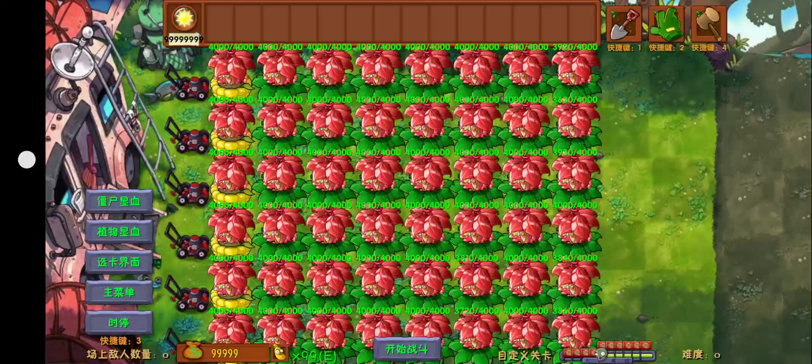 温馨提示: 本游戏是由B站UP主蓝飘飘fly 开发制作的同人游戏,233乐园对该游戏进行收录供大家游玩体验。 下载使用产生的版权问题请自行负责,233乐园不承担任何法律责任,如果您喜欢该游戏请支持官方正版。233乐园不拥有任何权利,其版权归该游戏的合法拥有者。如果该游戏侵犯了您的版权,请将相关版权证明或授权证明发送到邮箱,我们将在24小时内删除该游戏。 ------ 当夜色降临,游戏舞台转换至神秘的黑夜,一系列前所未见的夜间植物闪亮登场。这些新面孔不仅种类繁多,而且各具特色,拥有独特的能力,为你的防御阵容带来无限可能。面对更加强大的僵尸敌人,你需要运用智慧,精心搭配植物,展开一场场紧张刺激的防守战。 2.1.5更新内容: 更新内容: 1、新增植物: 普通: 火焰西瓜投手、吸金磁、超级机械保龄球坚果、铁豆小喷菇、裂荚小喷菇、阳光磁力菇、魅惑磁力菇、磁力大喷菇、铁桶大喷菇、橄榄球大喷菇 特殊: 模仿者 究极: 究极魅惑菇、红宝石伞、樱桃南瓜、蒜神、究极五叶草、灰烬三线、浴火三线、魅后菇 2、新增僵尸: 钻石盲盒僵尸、机枪海豚僵尸、冲锋黑曜石小鬼僵尸、究极黑曜石巨人、武装巨人、豌豆海豚僵尸、三爷铁豆僵尸 3、优化内容: -花盆可以直接放在植物下方 -现在可以通过在豌豆小喷菇上放豌豆融合成双发小喷菇 -随机模式前期不再出究极僵尸 -降低瓜跳的大跳距离,同时大嘴可以吃任何跳跳 -大幅降低了使用究极樱桃射手和究极窝炬造成的卡顿现象 -加入了按Q显示植物血量,按W显示僵尸血量的功能,咖啡豆改为E键 -花园拓展,现在可以翻页,可以开出紫卡植物和金植物,加农炮除外 -将带究极植物的模式单独分开,可以在主界面点击【旅行钥匙】进入 -我是僵尸模式新增自定义模式,存档位置和原自定义关卡存档位置相同,名称为CustomIZ.json 2.1.6更新内容: 1、修复了生存模式“更多的僵尸来了”后放置僵尸盲盒导致下一轮无法过关的bug 2、修复了叶子保护伞、超级伞血量异常的bug 3、优化了叶子保护伞弹僵尸的扣血量,1个僵尸时扣100,2~4个僵尸时扣150,大于4个时扣250 4、修复了大麦可以变究极鱼蛋bug 5、修复了阳光过多导致变为负数的bug,现在上限为99999999 6、修复了手套在我是僵尸模式存在冷却的bug 7、修复了诸神模式肥料不会给一格全部植物回血的bug 8、修复了三叶草碰撞体积异常的bug 9、修复了吸金磁偶尔不能吸子弹的bug 10、修复了僚机不能优先攻击飞行僵尸的bug 11、优化了游戏失败界面,现在生存模式可以选择直接重新开始本轮游戏 12、修复了给魅惑磁力菇小丑盒会生成普僵的bug 13、修复了究极魅惑菇特效丢失的bug 14、黑曜石高坚果亡语修改为受伤时由全场所有黑曜石高坚果分担伤害