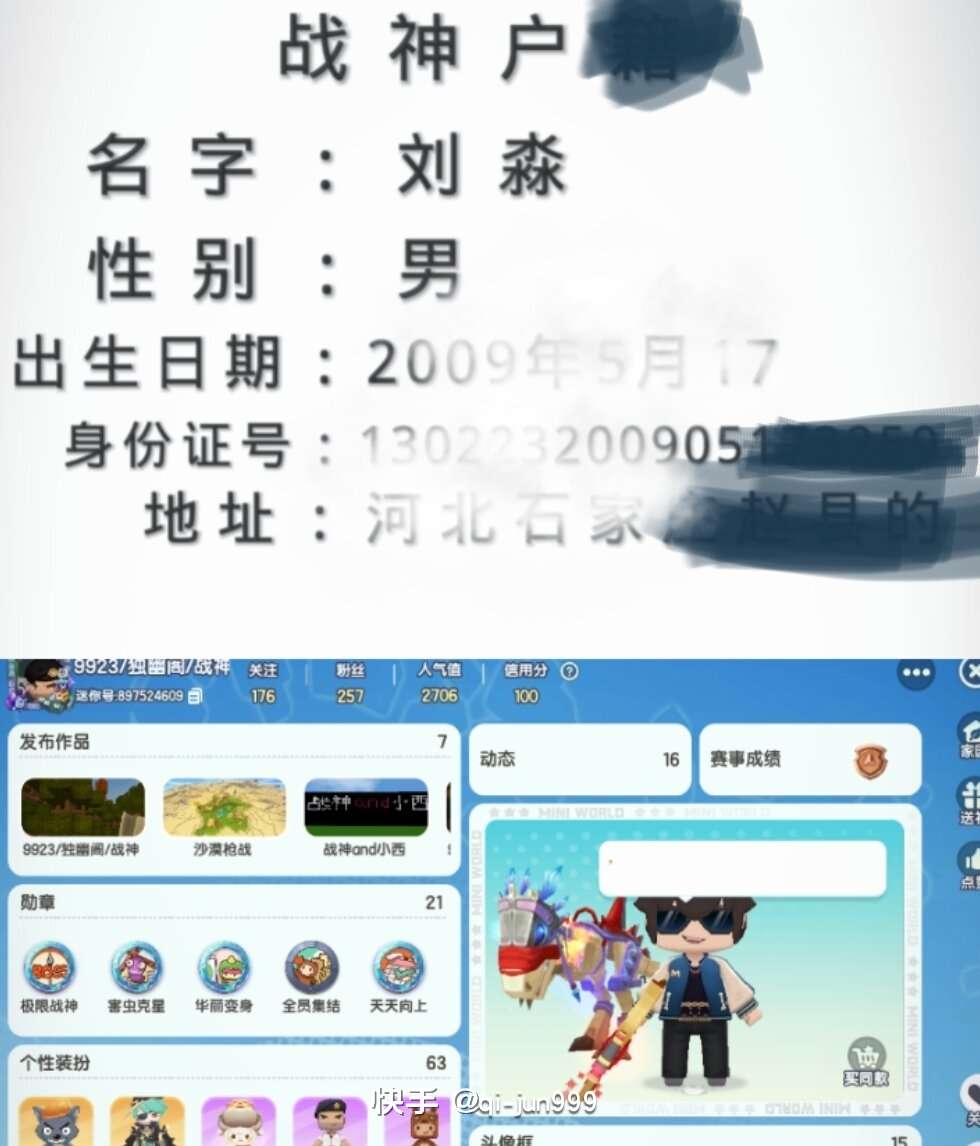 玩迷你世界的注意一下 迷你世界战神户籍已开 因为他打狙开挂打不过就骂人 各位看到的注意一下!我本人快手号qi-jun999