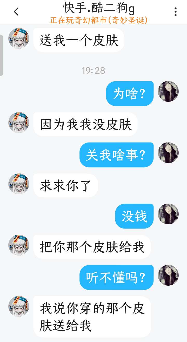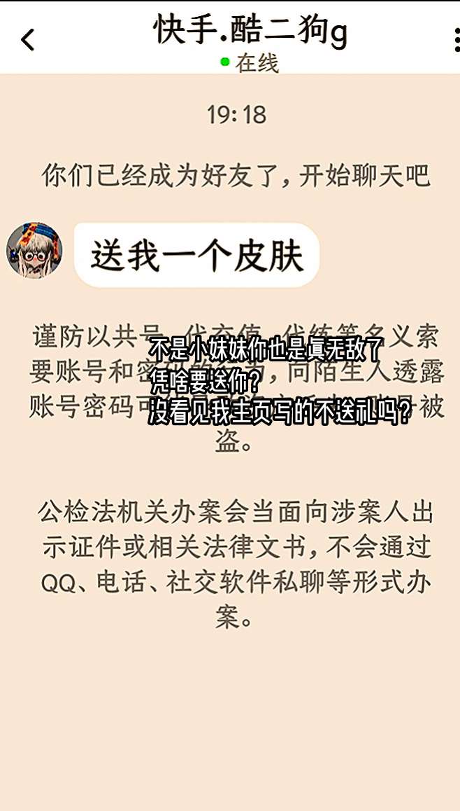 后面还说因为我没有皮肤😅