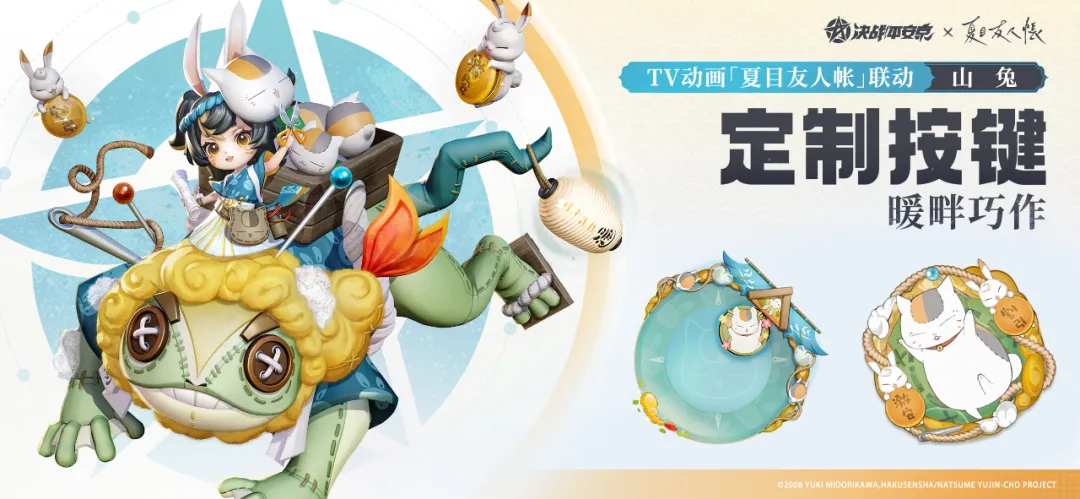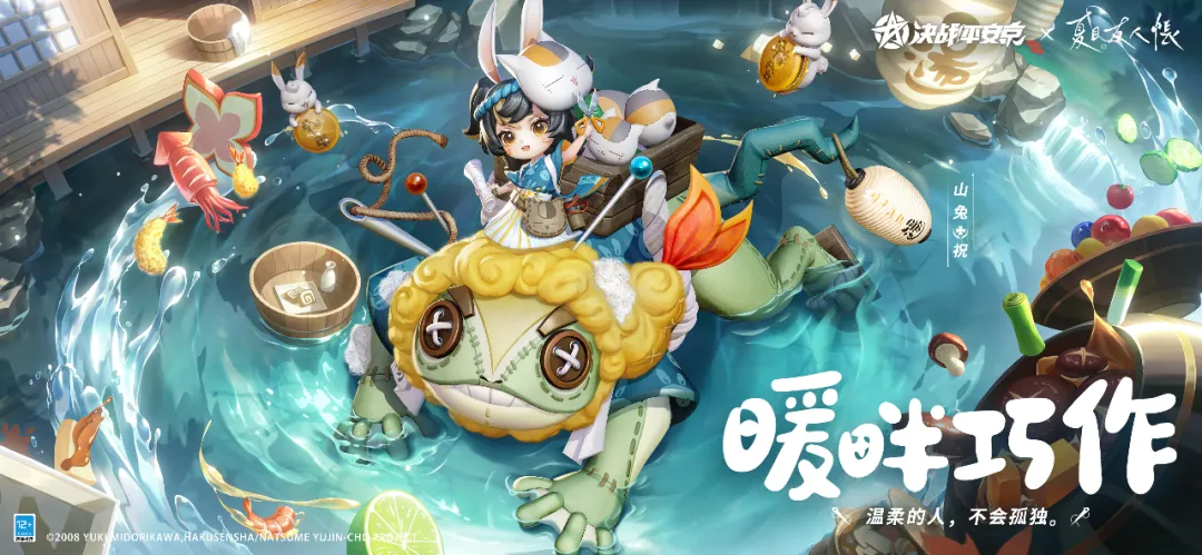 《决战!平安京》×TV动画「夏目友人帐」联动即将开启!12月31日0点后-1月13日,山兔联动限定皮肤「暖畔巧作」将限时上架服装铺,售价86皮肤券,首周享限时8.8折优惠!