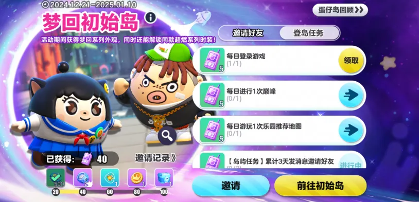 参与【梦回初始岛】活动并完成任务