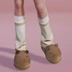圆圆的水豚头从脚尖探出,耳朵微微翘起,仿佛在说“走慢点哦~”。搭配的袜子是温柔的米白色,上面还有细腻的小刺绣,把水豚的那种悠闲与惬意完美融入了日常穿搭。
