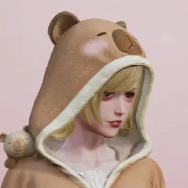 一只小水豚蹲在肩膀,可爱的耳朵微微竖起,搭配圆润的脸型设计,一只慵懒的“小水豚”活灵活现。柔软的毛绒材质看起来就让人觉得舒适又温暖,在冬天也能感受到水豚般的治愈气息。