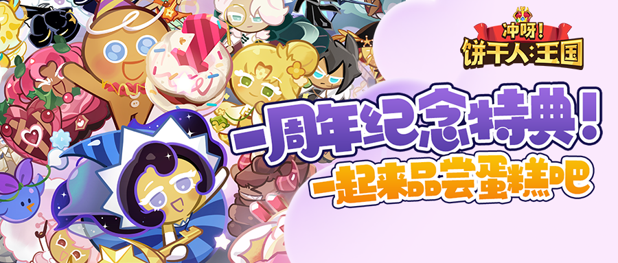 饼行一年,同享香甜!热闹的庆典,此时才刚刚拉开帷幕——一起成为一周年列车的荣誉乘客吧!参与饼干人王国一周年庆典,即可获得上古/传奇/史诗任选饼干*1、一周年蛋糕犬、一周年头像、纪念称号等好礼!