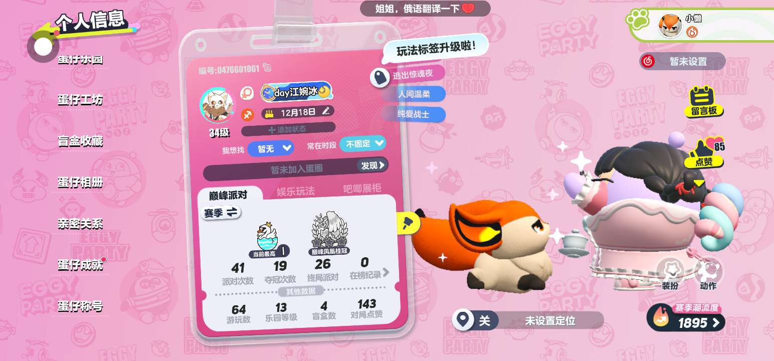 一般我玩蛋仔的情况下是不会换装扮的,如果有人换我装扮的话那就是盗号者我那个冰冰懒羊羊已经不使了