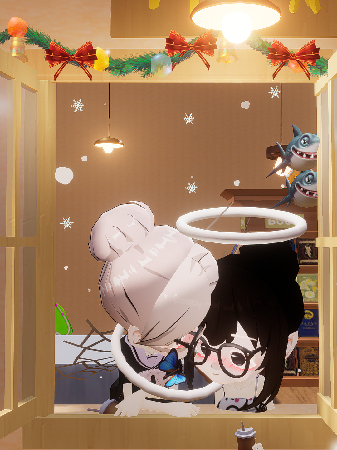 和姐姐一起拍照,注:黑色头发的是我,白色的是我姐