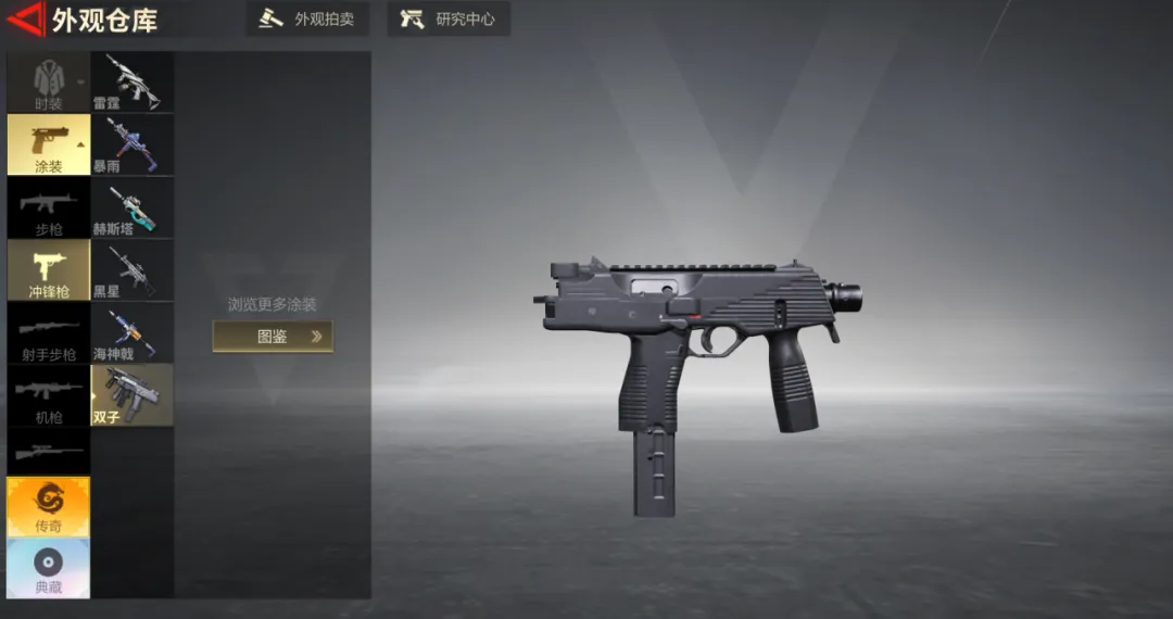 此枪械原型为TMP冲锋枪,使用9毫米口径弹药,射速较快,中近距离威慑力十足。自带枪口、弹匣和枪托槽位,镭射需要装备套件解锁,不支持装备瞄具;