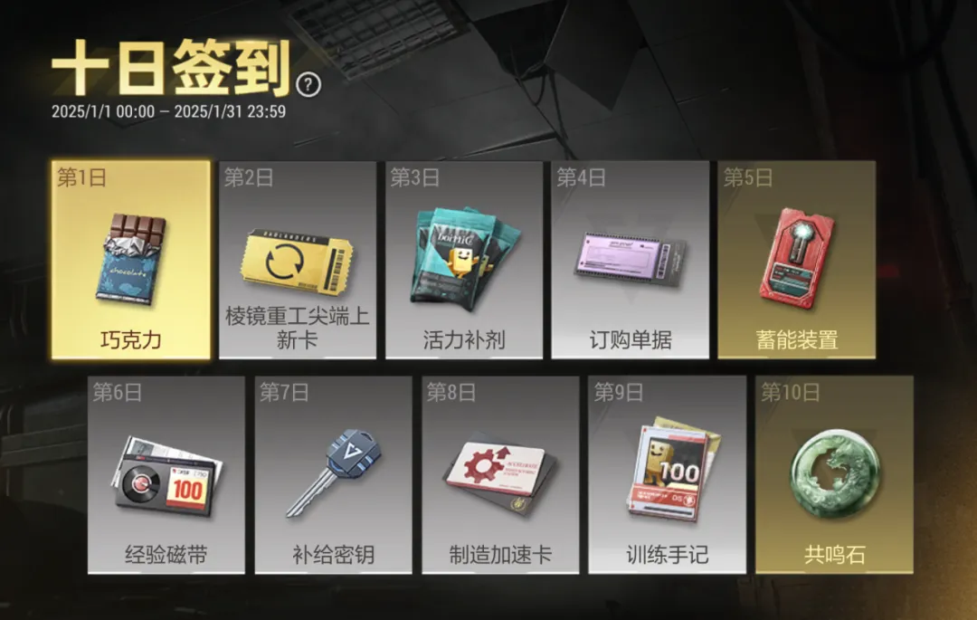 1月1日到1月31日期间,登录即可领取签到福利,签到10次即可领取包括【共鸣石】在内的全部奖励。