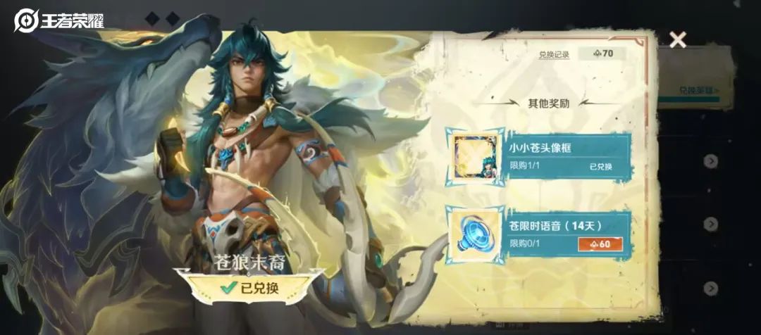 ◈活动奖励:英雄苍、小小苍头像框、限时语音