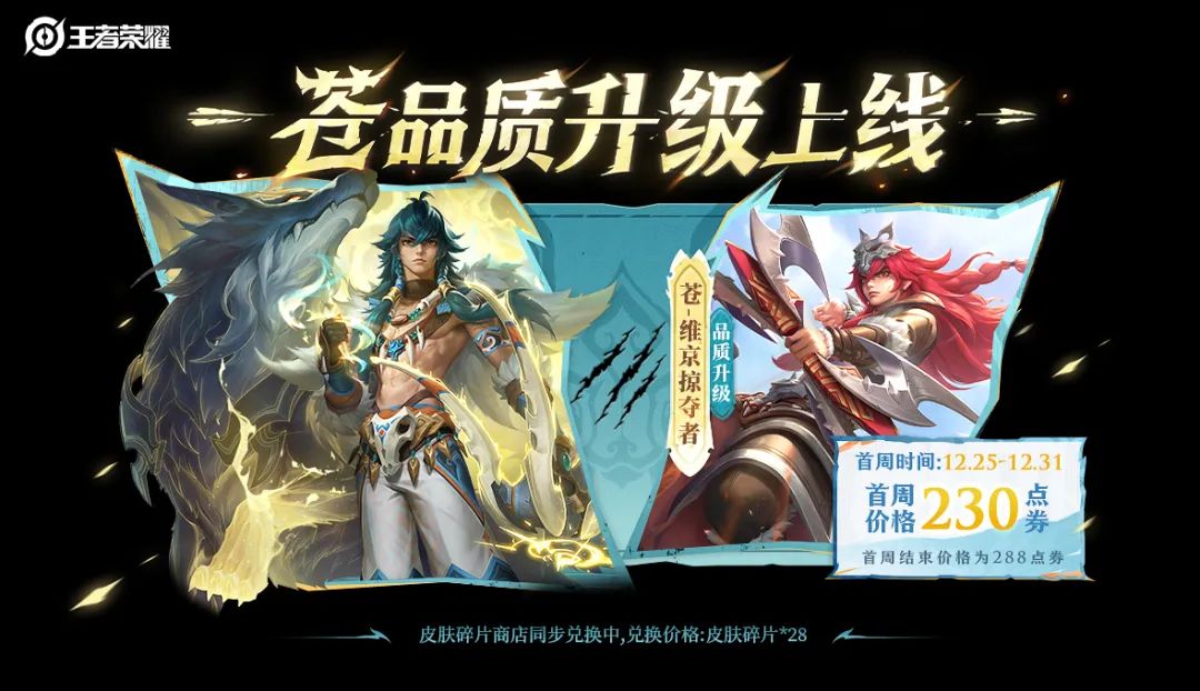 此外,苍英雄及伴生皮还将加入碎片商店开放兑换。
